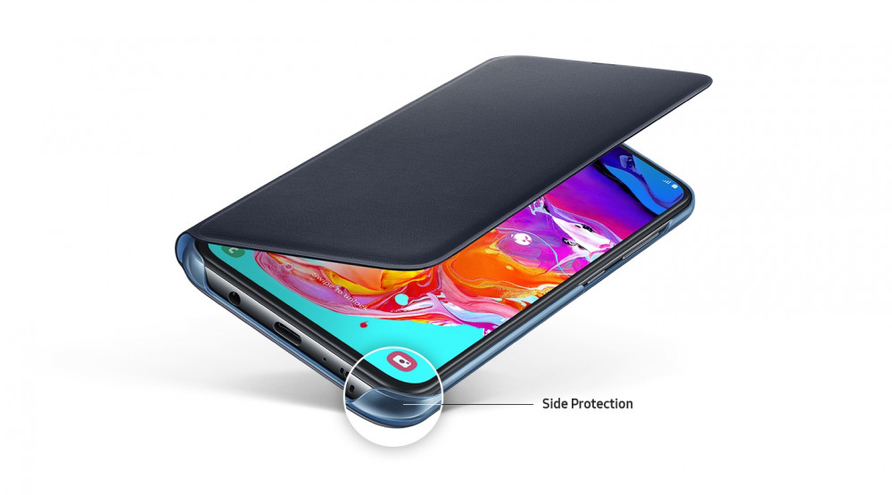 Cu designul său durabil, husa tip portofel pentru Galaxy A70 oferă protecție completă.