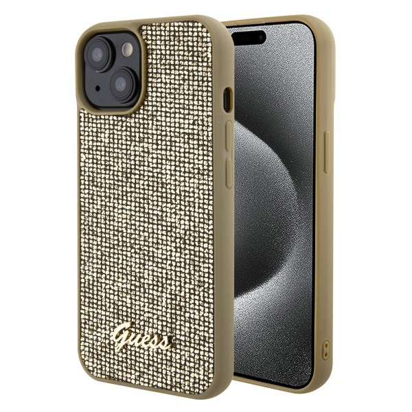Husa pentru Apple iPhone 15, Guess, Disco Metal Script, Aurie
