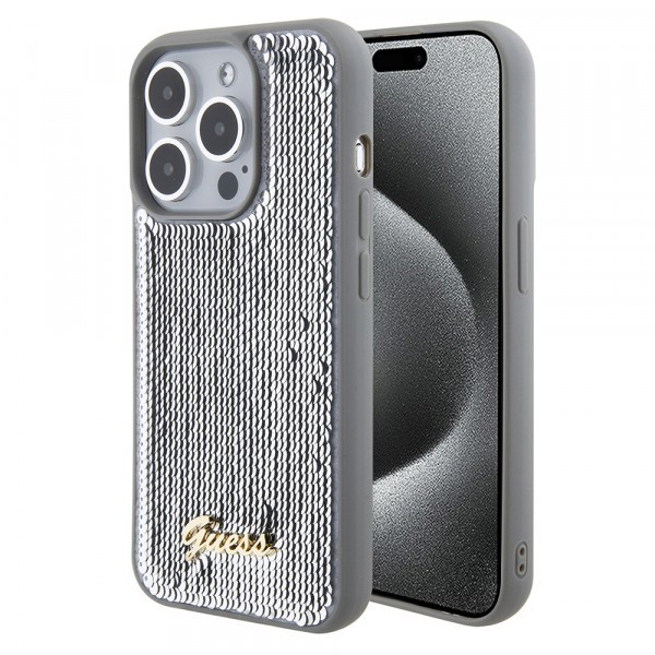 Husa pentru Apple iPhone 15 Pro Max, Guess, Sequin Script Metal, Argintie