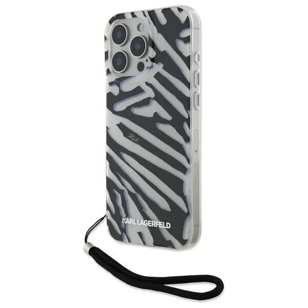 Husa pentru Apple iPhone 16 Pro, Karl Lagerfeld, IML Luxury Zebra Pattern with Strap, Neagra
