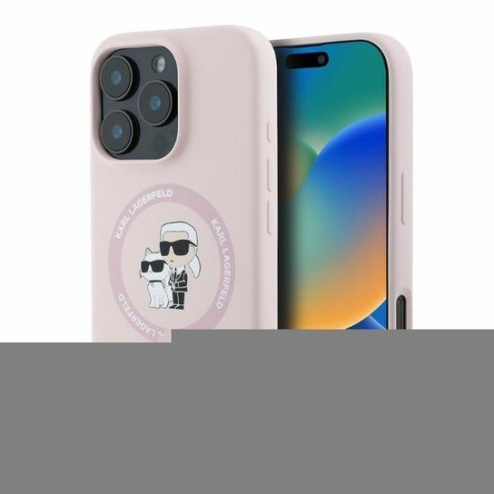 Husa pentru iPhone 16 Pro - Karl Lagerfeld Silicone Ring MagSafe (KLHMP16LSCMKCRHP) - Pink Karl&Choupette