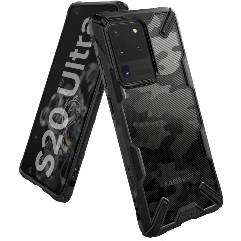 Husa Plastic - TPU Ringke Fusion X Design Camo pentru Samsung Galaxy S20 Ultra G988 / Samsung Galaxy S20 Ultra 5G G988, Neagra XDSG0027