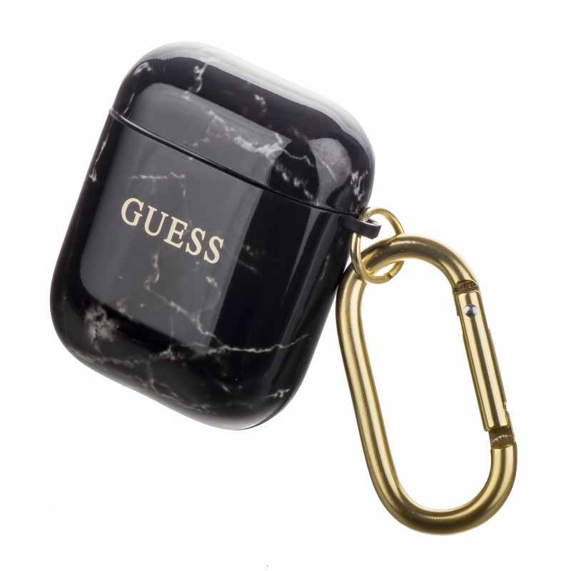 Husa Protectie Casti Guess Marble pentru Apple AirPods Gen 1 / Apple AirPods Gen 2, Neagra GUACA2TPUMABK
