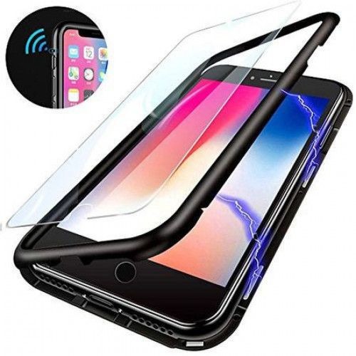 Husa protectie pentru iPhone 8 Negru Fullbody fata-spate Bumper metalic cu spate de sticla securizata premium