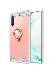 Husa silicon oglinda , inel si pietricele Samsung Note 10 , Roz