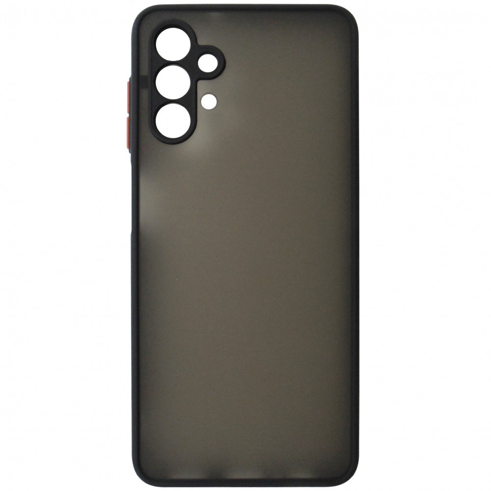 Husa spate policarbonat gri semitransparent si TPU negru, butoane rosii, pentru Samsung Galaxy A13 5G, A04s