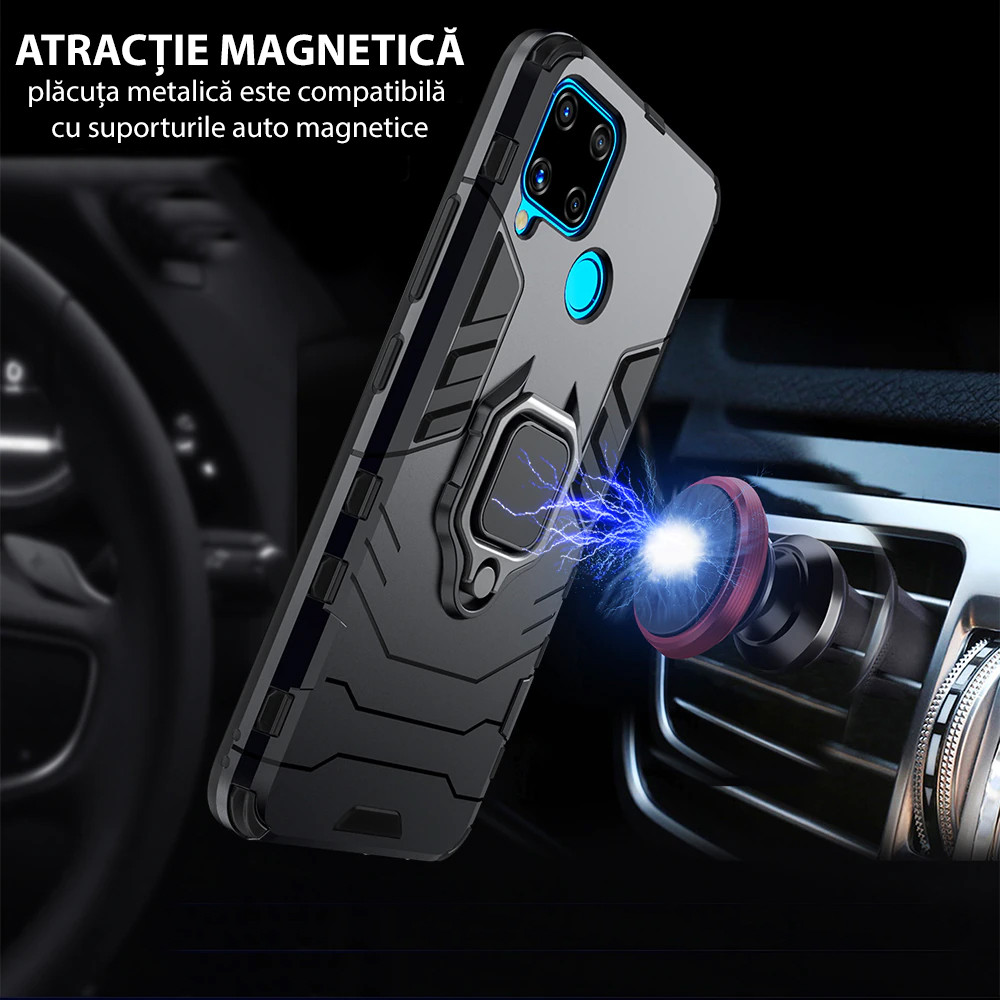 - Carcasa Techsuit prezinta o placuta metalica ce ajuta la fixarea telefonului pe un suport magnetic. Acum nu mai trebuie sa lipesti nimic pe smartphone!