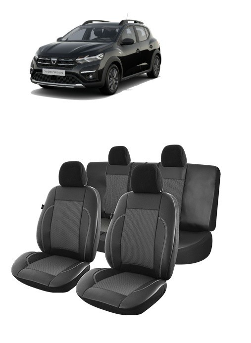 Husele sunt croite pe dimensiunile scaunelor de Dacia Sandero Stepway 2021 din material textil similar cu tapiteria originala OEM a masini si piele neagra, cu ambele fete dublate cu burete de 10 mm.