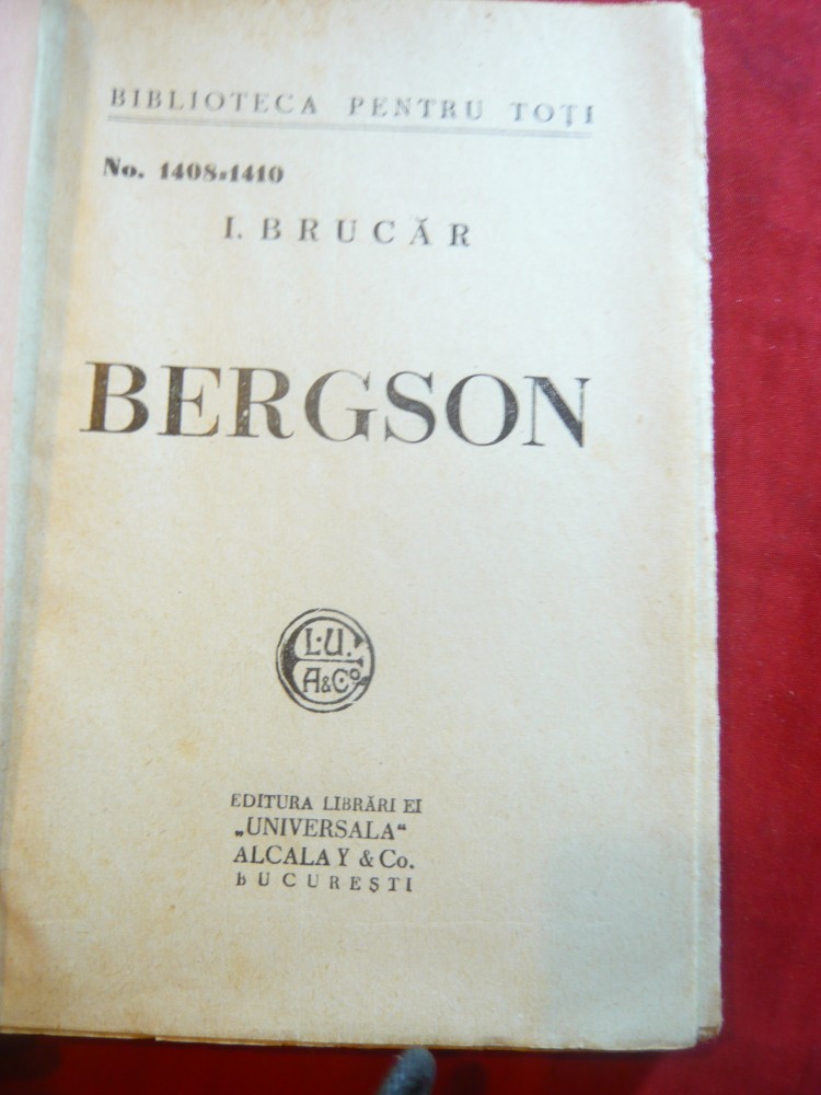 I.Brucar - BERGSON - Ed. 1935 BPT 1408-1410 ,Universala Alcalay , 200 pag