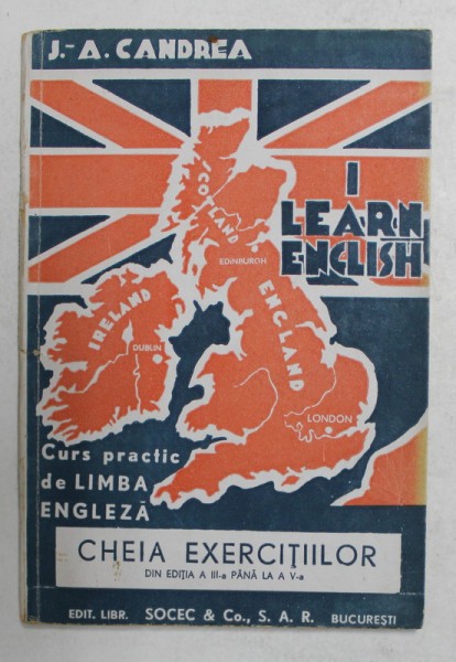 I LEARN ENGLISH - CURS PRACTIC DE LIMBA ENGLEZA - CHEIA EXERCITIILOR de J. - AUREL CANDREA , 1944