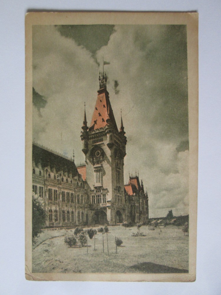 Iasi:Palatul Culturii,c.pos.tipografiata cu timbru rar de 10 Bani circulata 1959