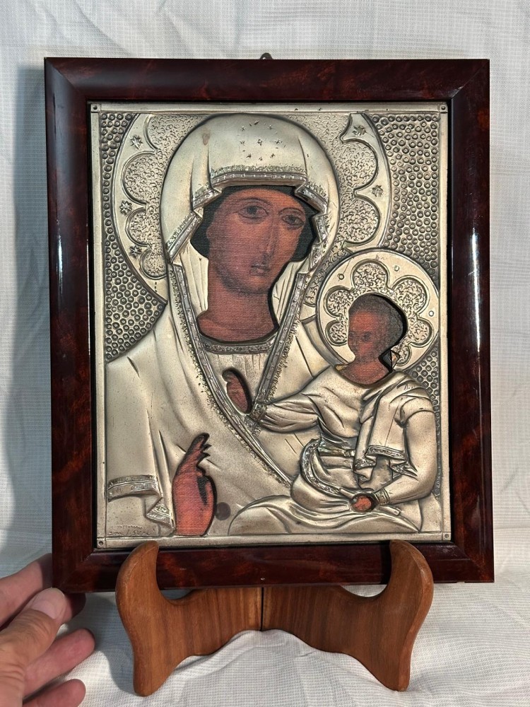 ICOANA Laminata ARGINT 925 - Maica Domnului cu Iisus - Emyl Sere - 40g. !