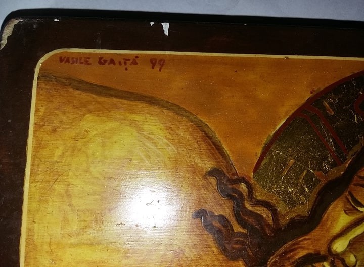 Icoana veche lemn,icoana pictata de lemn,Semnata/datata,stare cum se vede,T.GRAT