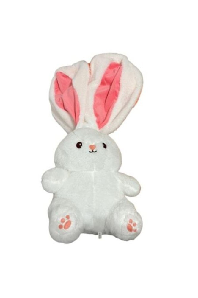 Iepure de pluș alb, transformabil în pernă, urechi mari, închidere cu fermoar, 35 cm