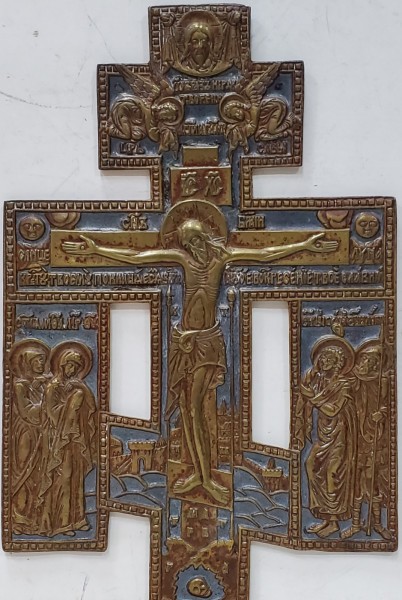 IISUS RASTIGNIT, CRUCIFIX DIN BRONZ SI EMAIL, RUSIA, SECOL. 19