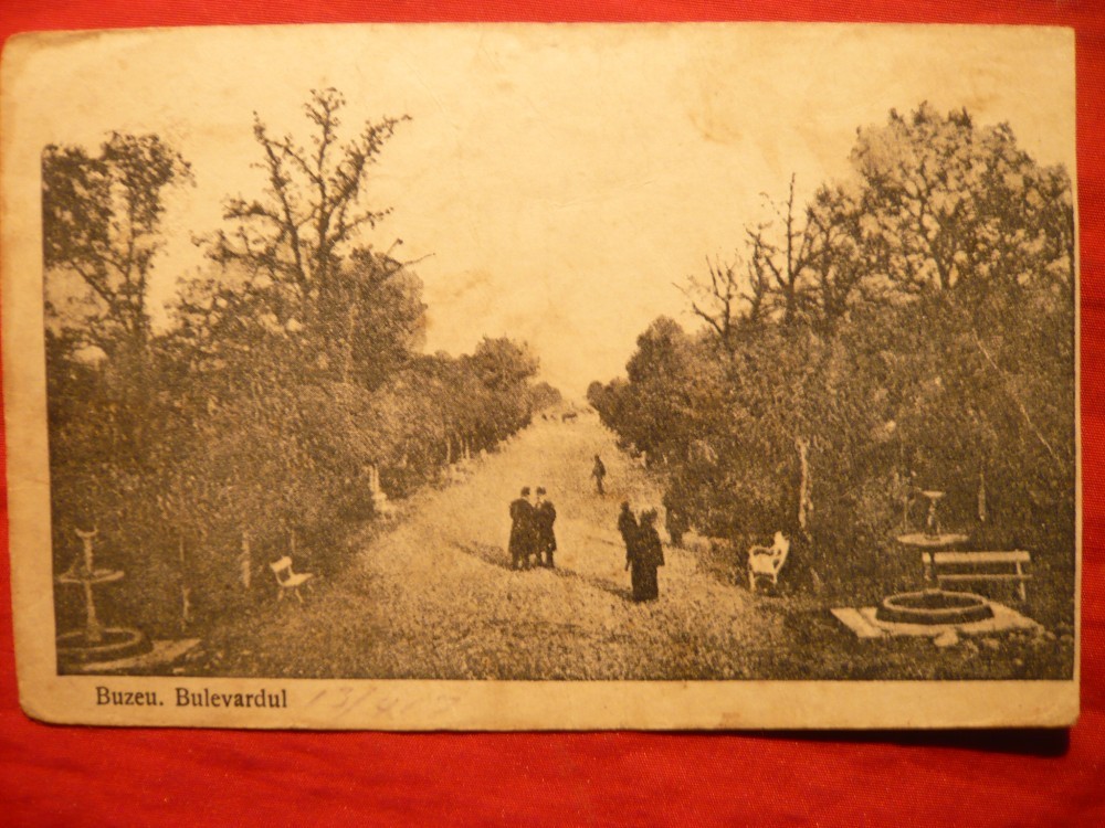 Ilustrata Buzau - Bulevardul , cu Posta militara germana ,Depozitul Saraga Swartz