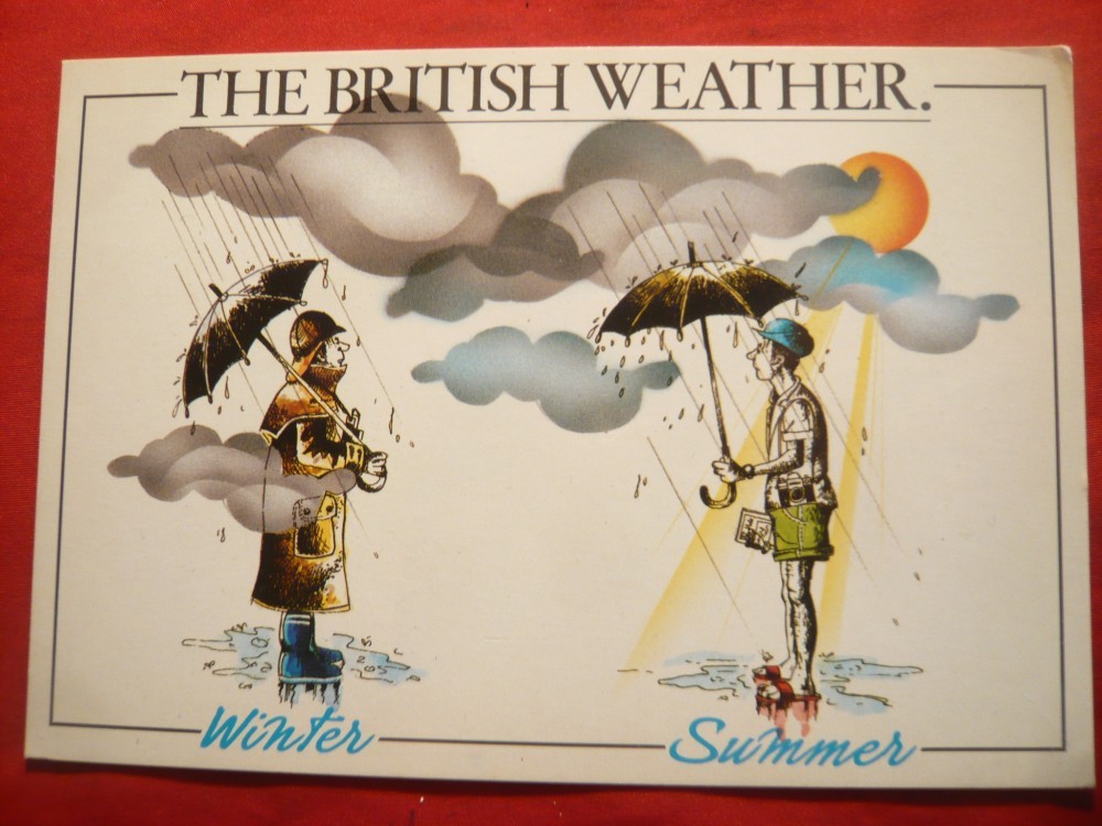 Ilustrata comica - British Weather - Vremea in Anglia iarna si vara