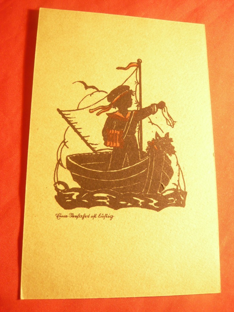 Ilustrata - Copil-marinar in barca , pe negativ , inc.sec.XX