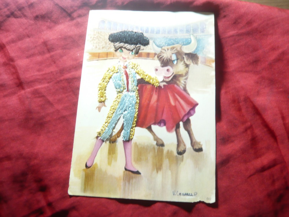 Ilustrata de autor V.Cegarra.P. , Toreadorul in arena -brodata , Spania