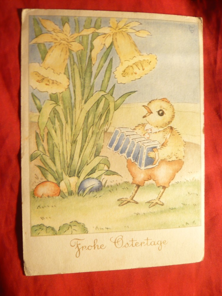 Ilustrata- Felicitare de Pasti - Puisor acordeonist