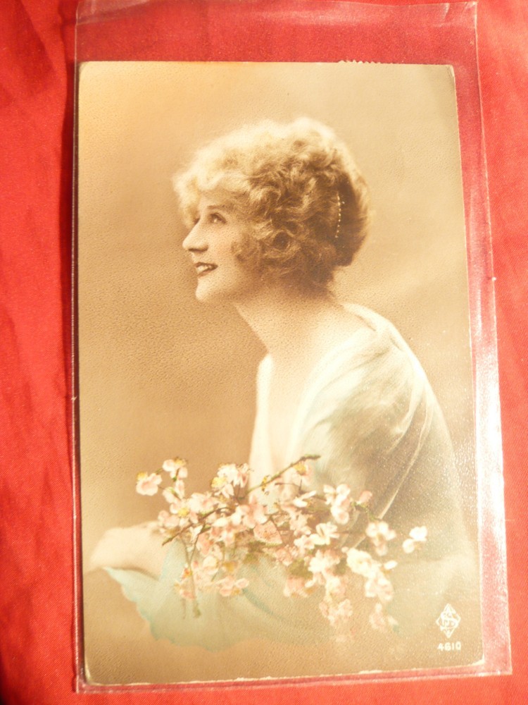 Ilustrata - Felicitare - Femeie intre Flori circ. 1925 Agentia spec.Varciorova