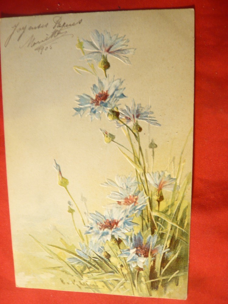 Ilustrata -Felicitare - Flori -in relief ,circulat 1905