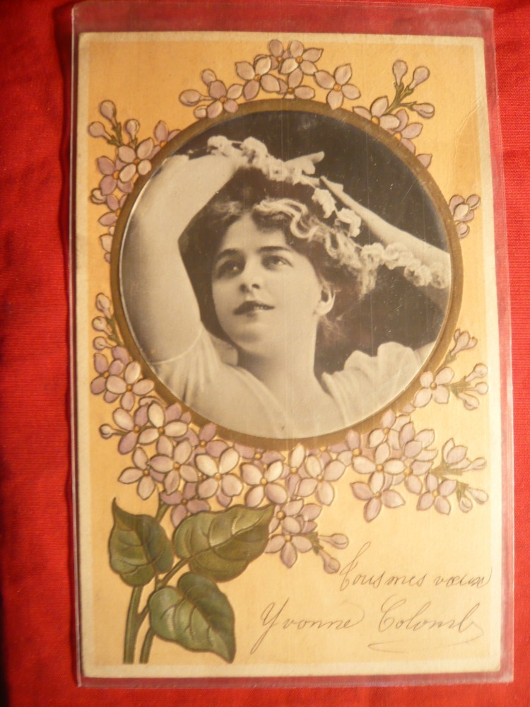 Ilustrata- Felicitare in relief - Medalion Femeie ,incadrata de ornamente florale