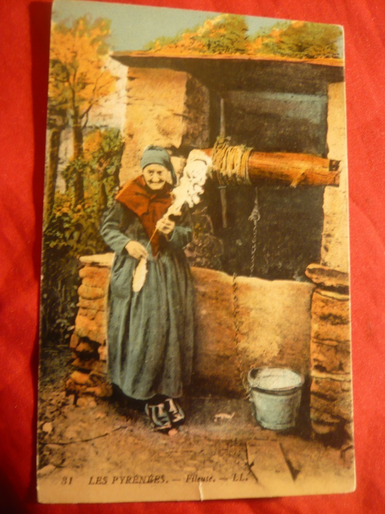 Ilustrata Folclor - Batrana cu Fusul in Pyrenees Franta ,inc.sec.XX