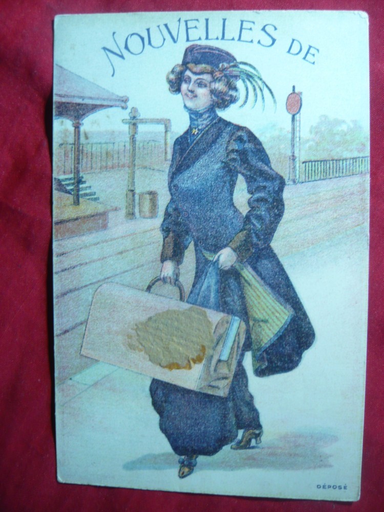 Ilustrata-Litografie- Calatoare in gara ,piesa autor , Franta