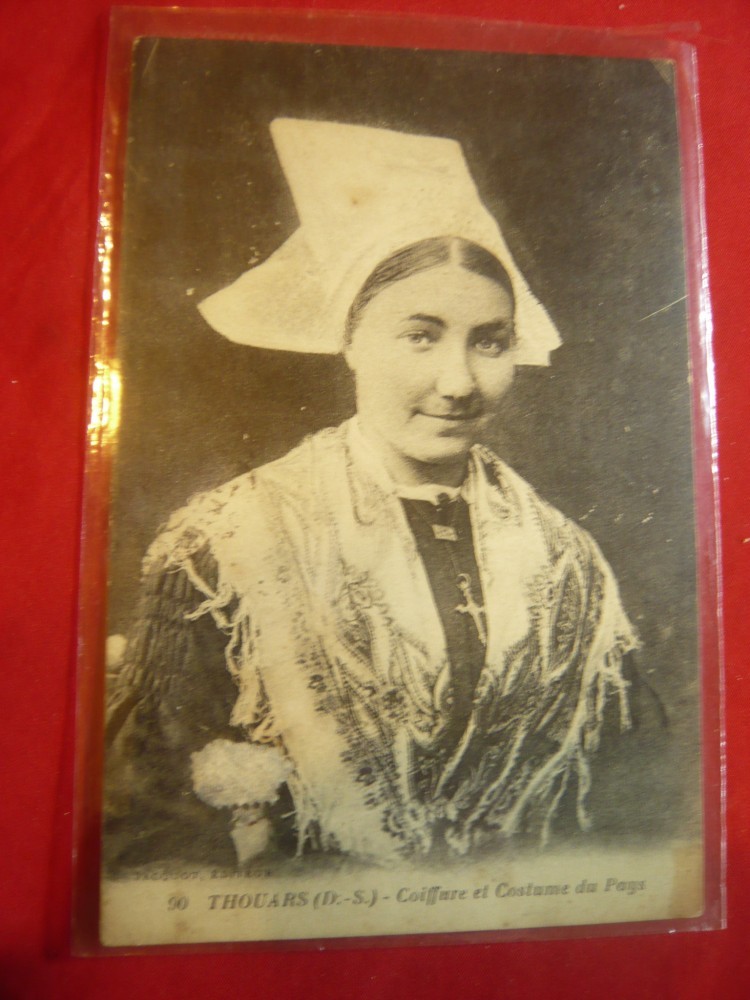 Ilustrata Port popular si coafura Thouars-Franta ,circulat 1928 la Bucuresti catre Capitan R.Pelimon