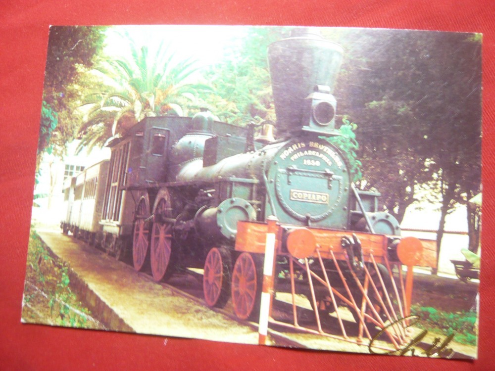 Ilustrata - Prima Locomotiva in Chile ,circ.Chile-Bucuresti 1981
