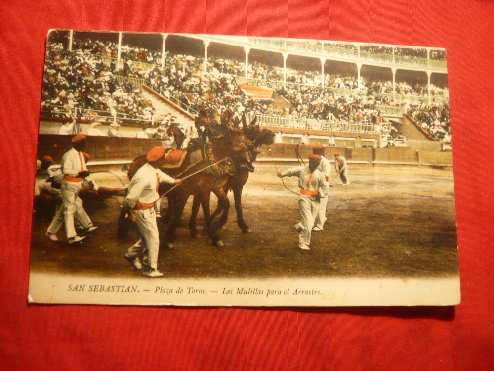 Ilustrata San Sebastian - In Arena cu taurii , interbelica