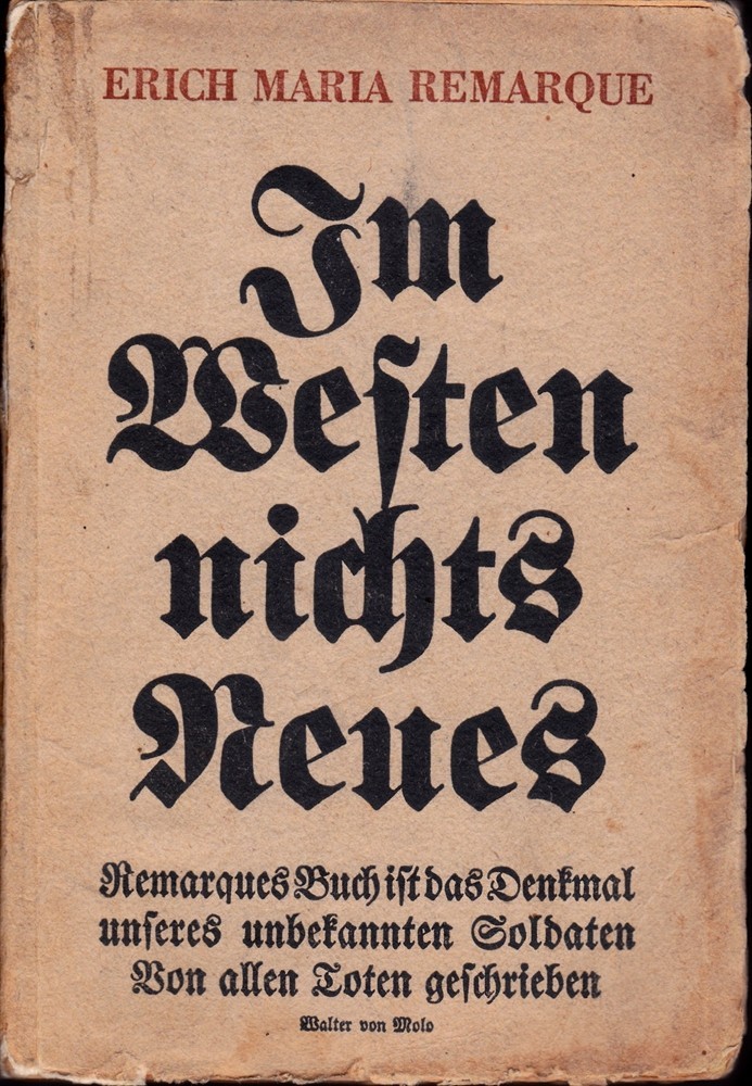 Im Westen nichts Neues, de Erich Maria Remarque, Editura Im Propylaen-Verlag, Berlin, 288 pagini, editia Princeps 1929. Roman istoric în limba germana inspirat din ororile Primului Razboi Mondial. În româna titlul este "Pe frontul de vest nimic nou". EXEMPLARUL DE FATA ESTE DIN PRIMA EDITIE ÎN LIMBA GERMANA ORIGINALA. ROMANUL A FOST TRADUS ÎN 22 DE LIMBI SI ÎN 2,5 MILIOANE DE EXEMPLARE ÎN PRIMELE 18 LUNI DE LA PRIMA APARITIE ÎN 1929. Pentru Bucuresti fac predare personala. Pentru alte localitati 11 ron taxe postale cu ramburs sau 5 ron colet simplu cu plata prin virament bancar. Pentru produse comandate in valoare de 50 ron trimit gratis colet simplu sau 5 ron cu ramburs, iar la 100 ron comanda expediez gratis cu ramburs.