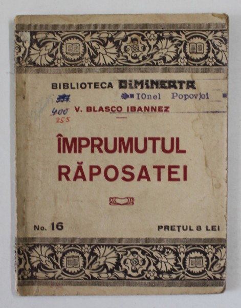 IMPRUMUTUL RAPOSATEI de V. BLASCO IBANEZ , EDITIE INTERBELICA
