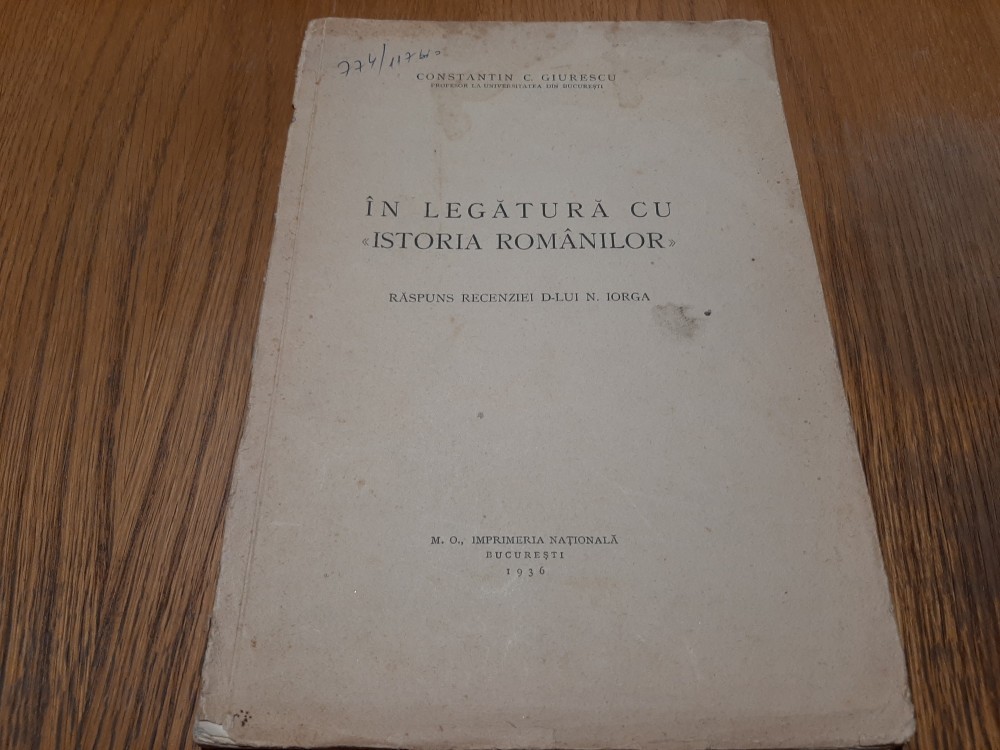 IN LEGATURA CU "ISTORIA ROMANILOR" Raspuns d-ului N. Iorga - C. C. Giurescu 1936