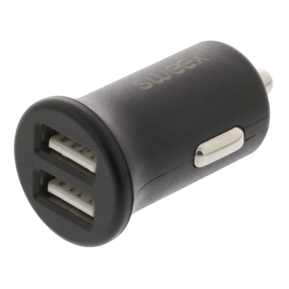 Incarcator auto 2x USB 2.4A negru Sweex Incarcati simultan doua smartphone-uri sau tablete cu acest incarcator de masina Sweex cu doua porturi. Este, de asemenea, compatibil cu sistemele de navigatie, camerele digitale si multe alte dispozitive cu conexiune USB.   Numar iesiri: 2x USB Tensiune alimentare: 12-24 V DC Curent iesire: 2.4 A   General information Charge two smartphones or tablets simultaneously with this Sweex dual-port car charger. It is also compatible with navigation systems, digital cameras and many other devices with a USB connection.   Features • Charges two devices simultaneously • 2.4 A   Specifications Output Current: 2.4 A Max. output current per port: 2.4 A No. of outputs: 2 Voltage: DC 12...24 V Socket type: 2x USB Power plug: Car Adapter