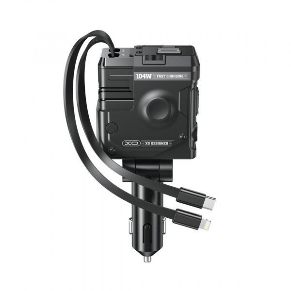 Incarcator Auto Cu Cablu USB-C / Lightning XO Design CC66 4in1, 104W, 3A, 1 x USB-A - 1 x USB-C, Gri