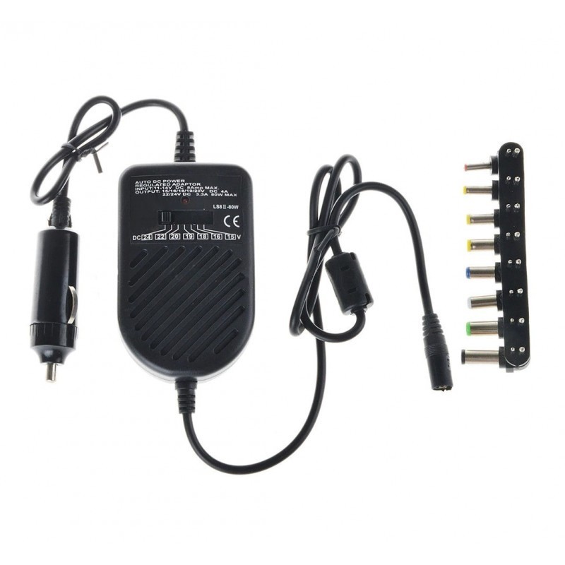 Incarcator laptop reglabil elSales ELS-JT-80, putere maxima 80 W, 8 conectori, negruAcest alimentator reglabil universal pentru laptop cu 7 valori ale tensiunii de iesire se conecteaza la 12V DC si are 8 mufe diferite compabibile cu majoritatea laptopurilor ale diferitelor branduri existente cum ar fi:Acer,Asus,Compaq,Dell,Fuijtsu,Gateway,HP,IBM,NEC,Sony,Delta,Toshiba si multe altele 7valori ale tensiunii de iesire 8 conectori interschimbabili Specificatii: tensiune de intrare:Auto 12 V Ieşire: 15V/16V/18V/19V/20V - 4A max Iesire: 22V / 24V - 3A max Putere de iesire: 80 W maxim