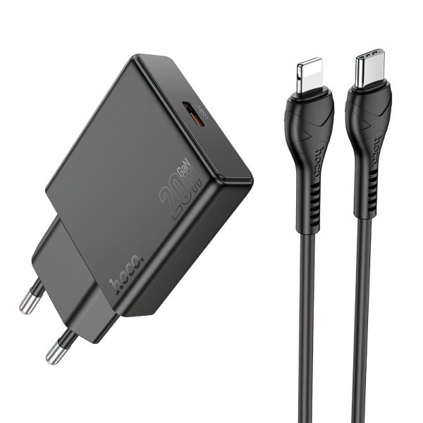 Incarcator Retea Cu Cablu Lightning HOCO N37, 30W, 3A, 1 x USB-C, Negru