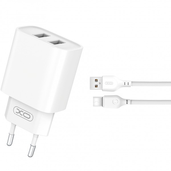 Incarcator Retea Cu Cablu USB-C XO Design BPCE02C, 10.5W, 2.1A, 2 x USB-A, Alb
