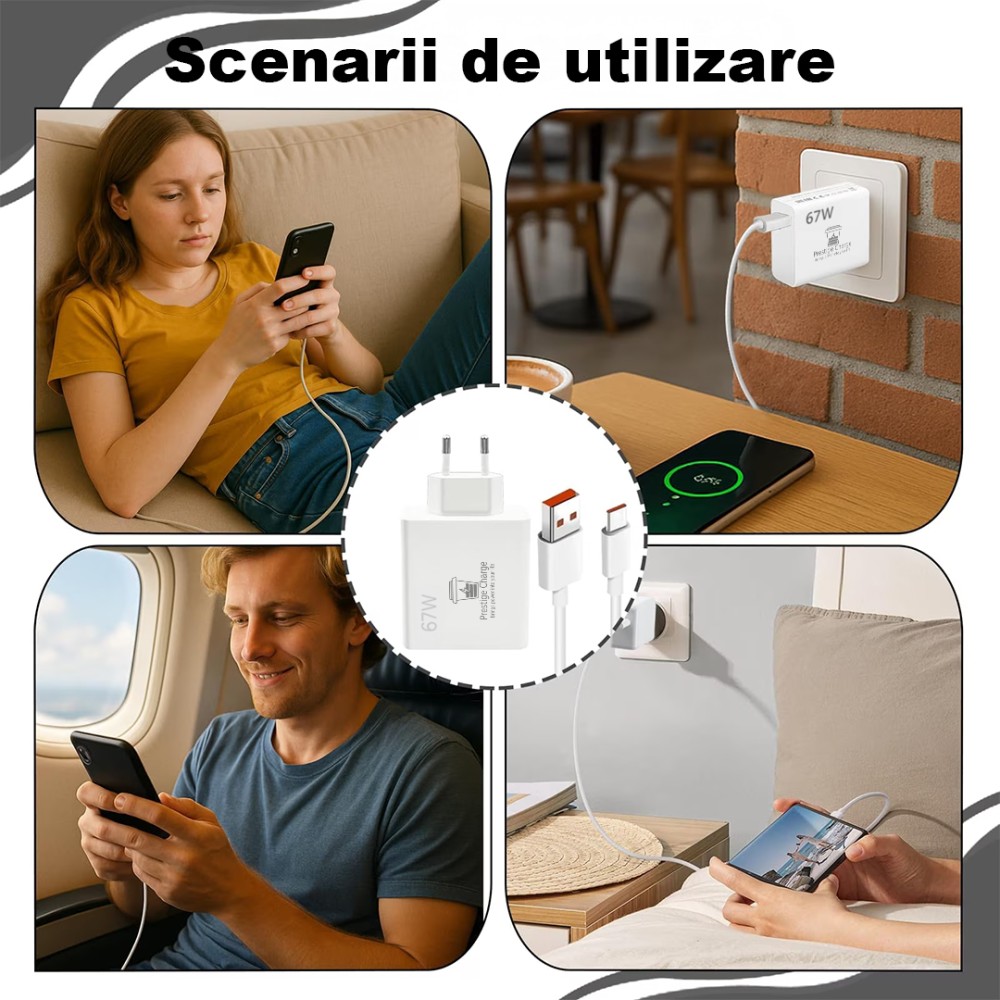 ATENTIE! Acest set de incarcare este compatibil exclusiv cu dispozitive Xiaomi care suporta protocolul TurboCharge 67W si cu versiunile anterioare ( QuickCharge 33W, QC 3.0 18W). Nu garantam compatibilitate cu alte dispozitive.
