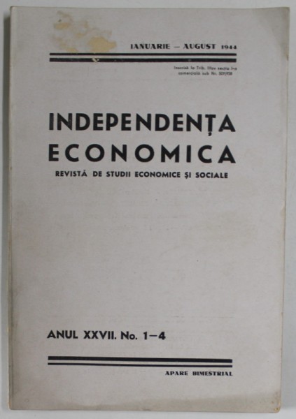 INDEPENDENTA ECONOMICA , REVISTA DE STUDII ECONOMICE SI SOCIALE , ANUL XXVII , NR. 1-4 , IANUARIE - AUGUST , 1944