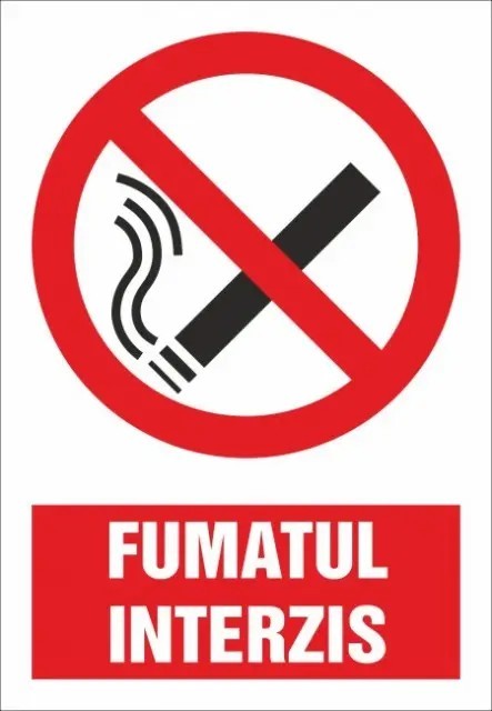 Descriere Indicator "Fumatul interzis" Material: PVC 1,5mm rigid, lucios, rezistent la agenţii naturali şi corozivi Dimensiune : 30 Cm x 20 Cm Indicatoarele sunt prevăzute cu găuri de fixare în colţuri şi se pot suspenda, nitui sau fixa în şuruburi sau cu ajutorul benzii adezive duble. Materialele din care sunt executate indicatoarele sunt de o calitate superioară, având în vedere faptul că acestea trebuie să reziste în timp la agresiuni de exploatare, diferenţele de temperatură, intemperii sau expunere prelungită la soare.