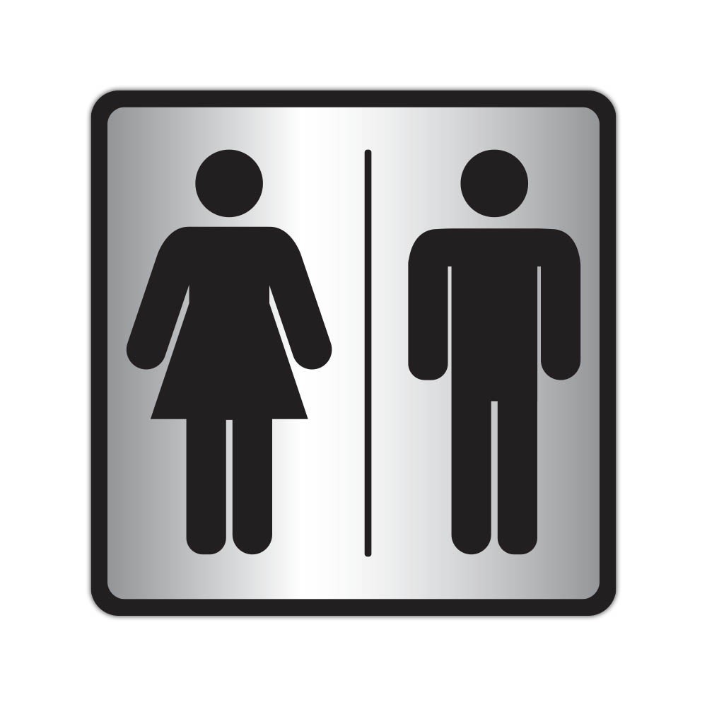 Indicator pentru grup sanitar unisex, cu simbol femeie și bărbat, ușor de recunoscut și potrivit pentru spații comerciale, birouri, instituții sau locații publice. Disponibil în mai multe dimensiuni și materiale.