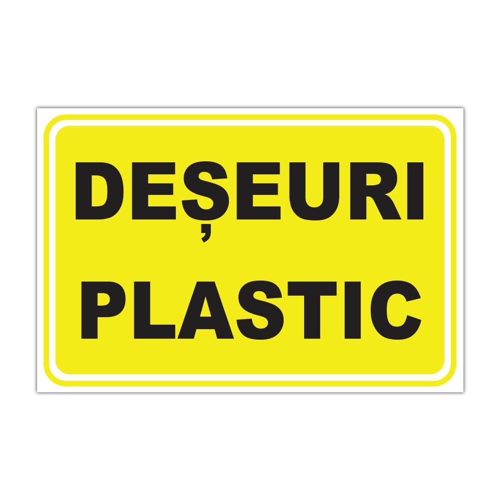 Indicator de informare „Deșeuri plastic”, ideal pentru spații comerciale, birouri, depozite, școli sau zone de colectare selectivă. Disponibil pe autocolant printat UV sau pe placă din plastic PVC de 3 mm, în dimensiunile: 10 x 15 cm, 15 x 20 cm, 20 x 30 cm, 30 x 40 cm și forme speciale.