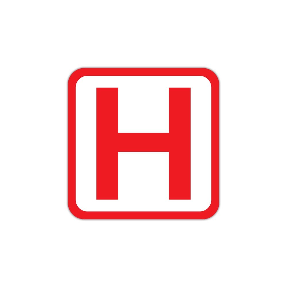 Indicator PSI cu litera H, realizat pentru semnalizare clară și vizibilă în spații comerciale, industriale sau administrative. Disponibil pe autocolant printat UV sau pe plastic PVC de 3 mm, în mai multe dimensiuni.