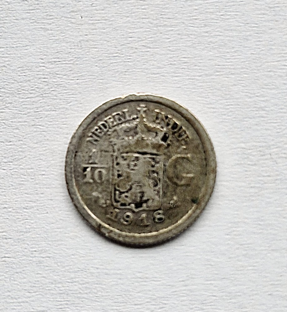 Indiile Olandeze de Est 1/10 Gulden 1918 moneda din argint km # 311 AG. 720 Wilhelmina