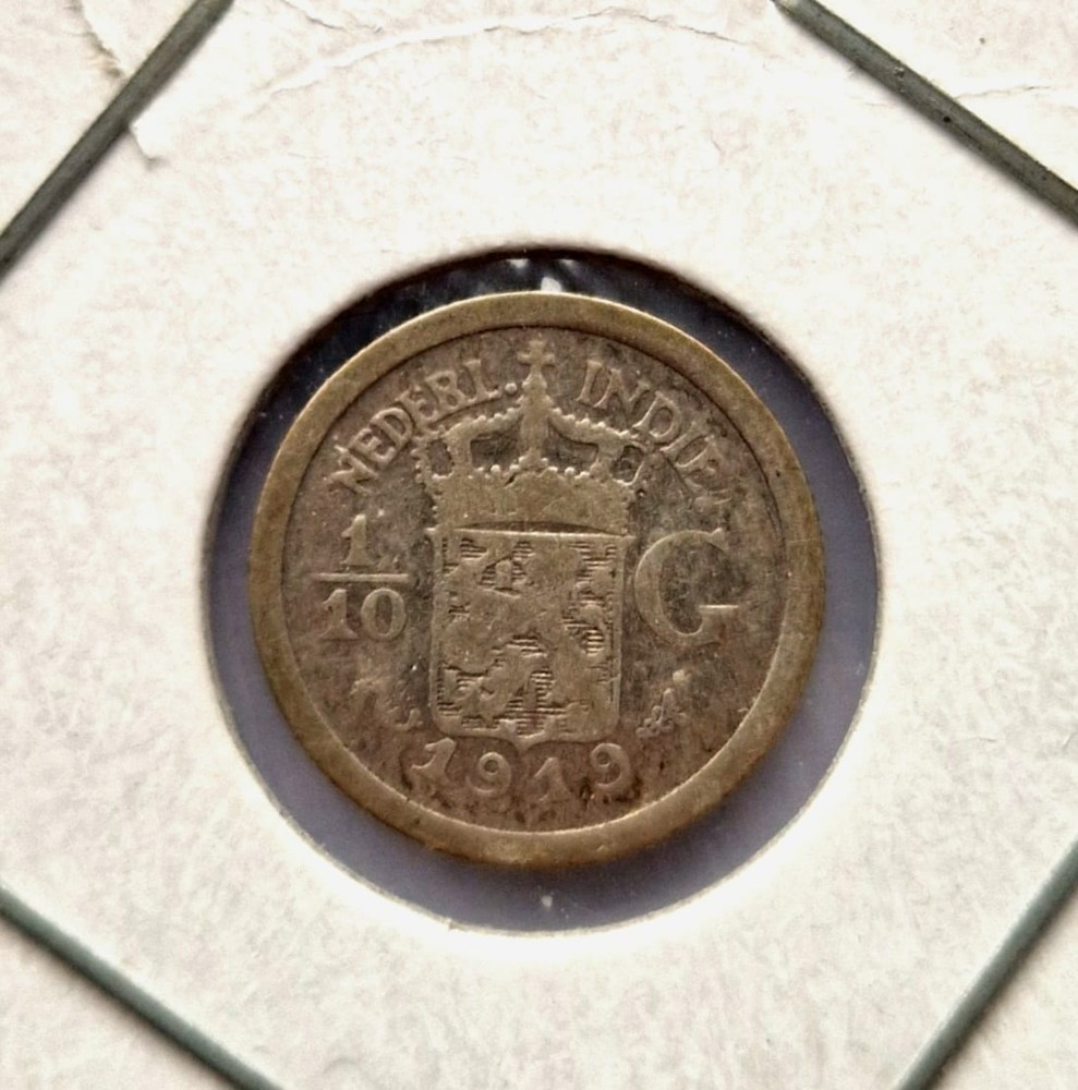 Indiile Olandeze de Est 1/10 Gulden 1919 moneda argint km # 311 Wilhelmina