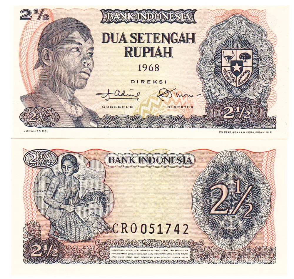 Indonezia 2 1/2 Rupiah 1968 P-103 UNC