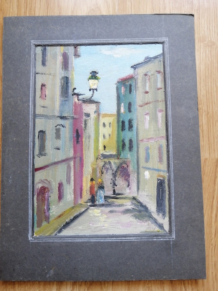 Indragostiti la plimbare - pictura in ulei pe carton - dimensiuni: 21 x 28,5 cm